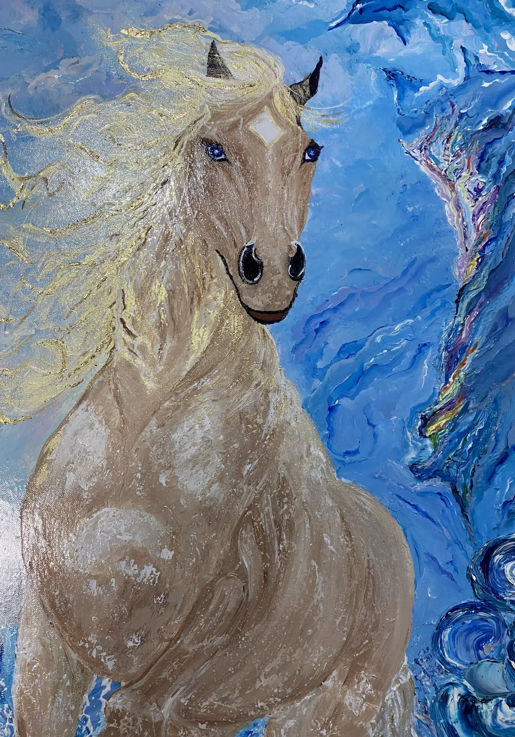 The horse is one of the masterpieces of my Contemporary Art collection. This majestic animal, with his untamed spirit, is a symbol of freedom, strength, and elegance. In summary, “Magnus Horse” is a calm yet deeply respectful work celebrating the beauty and nobility of horses, executed with technical finesse and emotional sensitivity. Handmade by Andrada G.